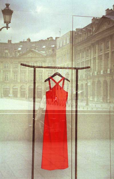 The red dress draws the eye-